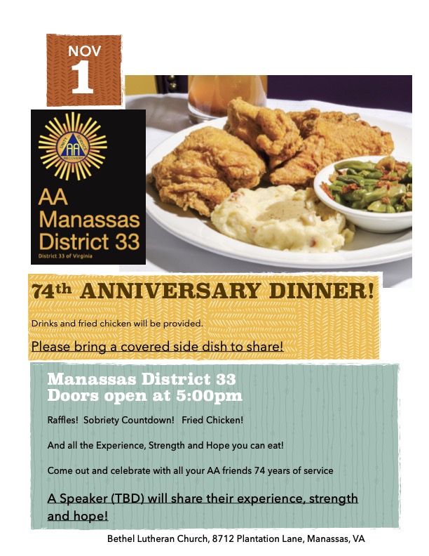AA Manassas District 33, 74th Anniversary Dinner